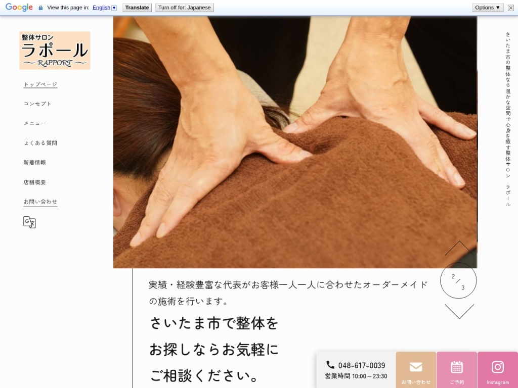 整体サロンラポール(〒330-0061 埼玉県さいたま市浦和区常盤1丁目7−11)では、施術だけでなく、一人ひとりの生活スタイルに合わせたセルフケア方法のアドバイスも行っています。健康的な体づくりのために、ぜひ専門家のアドバイスを取り入れてみてください。